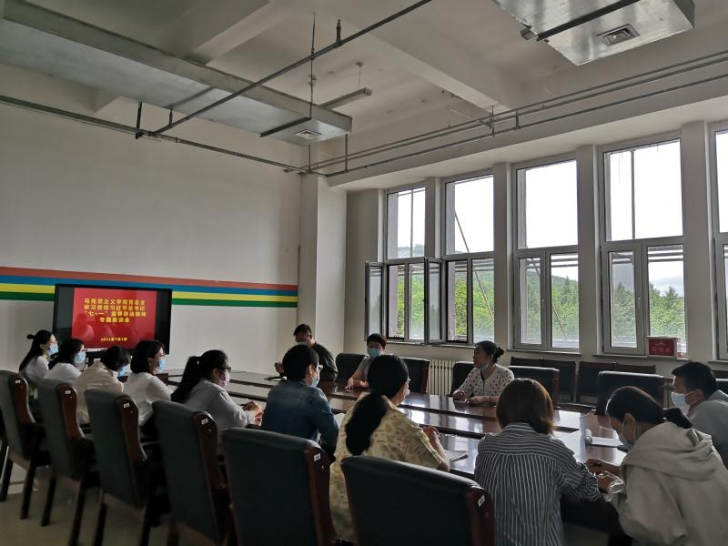 7月1日上午,马克思主义学院党总支组织全体思政课教师在图书馆报告厅集中收看大会庆祝中国共产党成立100周年大会盛况,并在会后立即在图书馆三楼会议室召开学习贯彻习近平总书记“七一”重要讲话精神座谈会,掀起学习、热议习近平总书记重要讲话精神的热潮。座谈会由马克思主义学院党总支书记高丽娴主持。