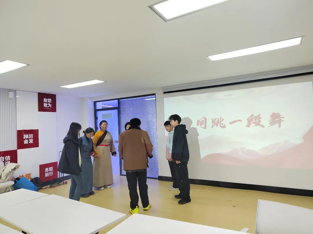 维吾尔族和藏族的学生教授本民族舞蹈,以舞叙情,共同表达对民族团结的赞美和对祖国的热爱。